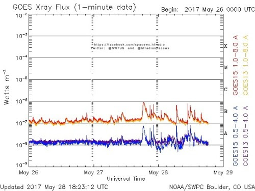 Here is the current forecast discussion on space weather and geophysical activity, issued 2017 May 28 1230 UTC.